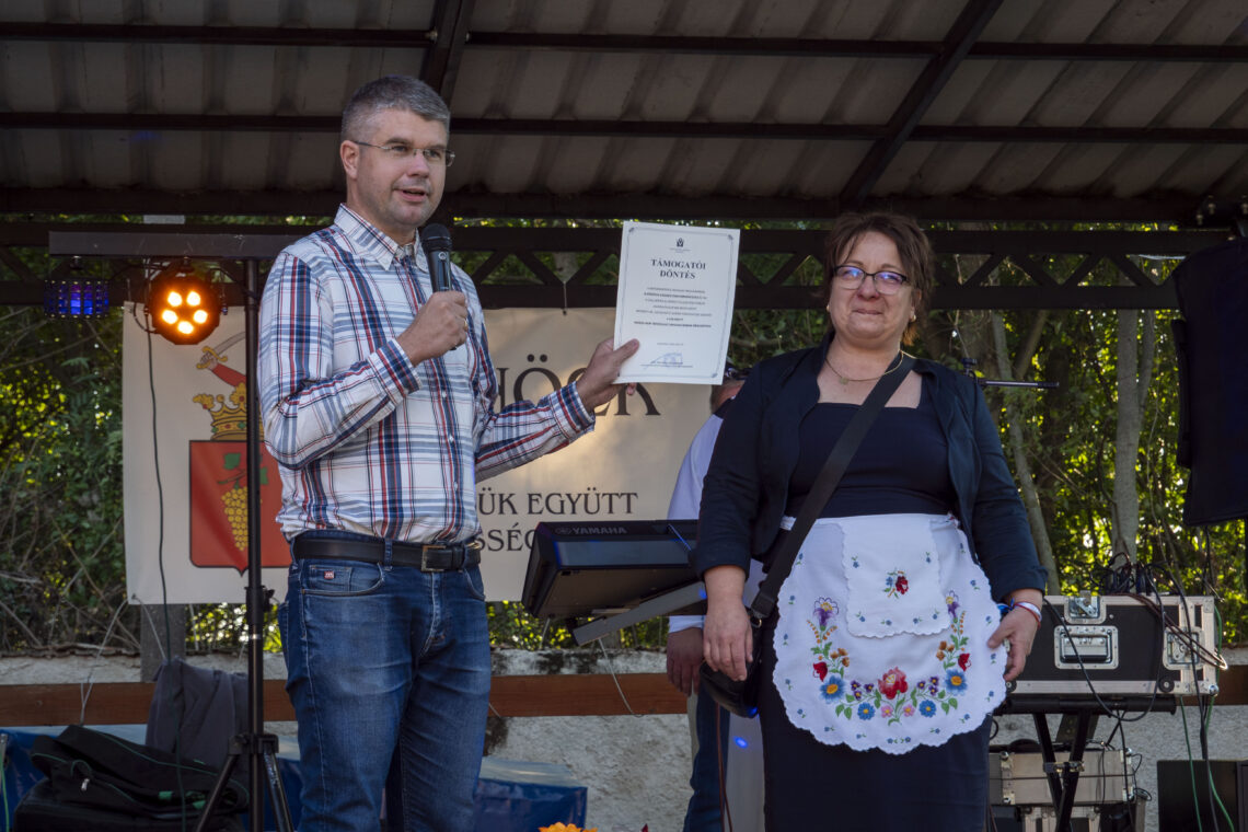 A szüreti felvonulás részekén adták át a település új kemencéjét is. – Közösségünk összefogását és erejét méltó módon szimbolizálja a felavatott és megáldott kemence. Az előző képviselő-testület egy gyönyörű pagodát ajándékozott településünknek a Művelődési Ház udvarán, melyet a jelenlegi képviselő társakkal továbbgondoltunk. Nagyon sok segítő ember közös munkájának és anyagi támogatásának köszönhetően négy hónap alatt elkészült Vönöck közösségi kemencéje megerősített talapzaton a pagoda alatt. Bízom benne sok örömöt, finom falatokat és megannyi közös élményt nyújt majd mindannyiunknak – fogalmazott Tarczi Györgyi polgármester.