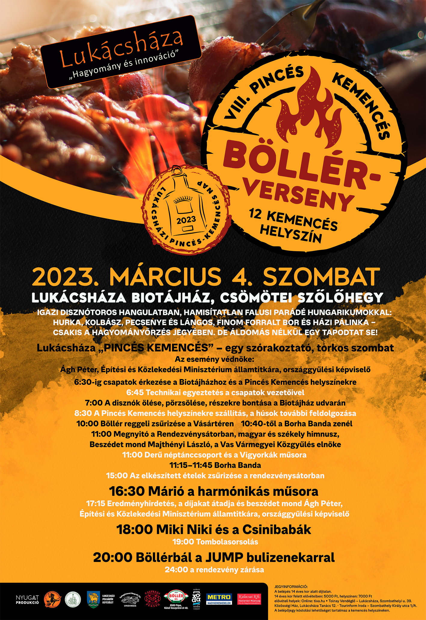 Hírek Március 4-én ismét lukácsházi böllérverseny! 2023.02.26. Ismét megrendezésre kerül Lukácsházán a PINCÉS-KEMENCÉS BÖLLÉRVERSENY! A VIII. alkalommal megszervezett program 12 helyszínen fog zajlani. Az esemény védnöke, Ágh Péter. Részletek: https://www.facebook.com/lukacshazipinceskemences/ Előző Disznótoros mulatság a farsang farkán Gencsapátiban Legújabb Celldömölk fejlesztéseiről az M1-en Ezeket is érdemes megnézni Az Önkormányzati Tűzoltóságok Országos Szövetsége kitüntetéssel köszönte meg Ágh Péter munkáját 2025.10.04. Kiállítás nyílt a megújult lovardában Fehérvárcsurgón 2023.11.21. Mindenki lehet hazafi – 1848 hőseire emlékeztek Celldömölkön 2025.03.15.